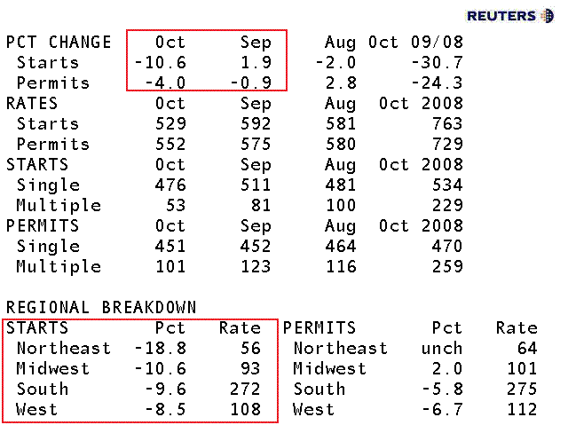 Although still a contraction, I view this small decline as being a result of home builders putting construction plans on hold while the home buyer tax credit extension legislation was still undetermined. So more than anything I think it's fair to say the most meaningful indicator of home building activity was in STATUS QUO mode for the month of October.
