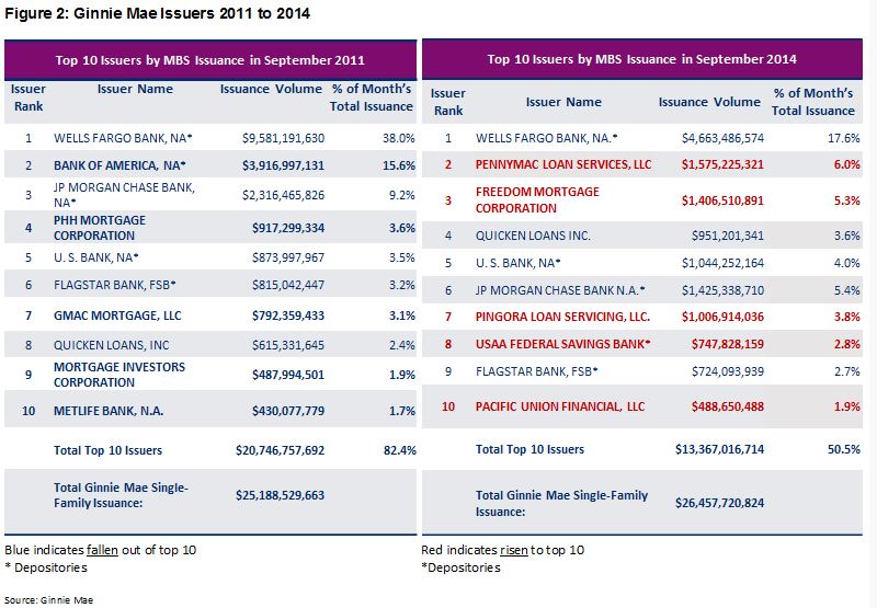 In the past five years there has been a monumental shift inrnmortgage loan servicing. Bank servicingrnsubsidiaries, which once dominated in the market, no longer even constitute arnmajority of companies servicing Ginnie Mae mortgage loans. In an article in the CoreLogic Insights blog Faith Schwartz CoreLogic’srnsenior vice president of Government Solutions, takesrna look at how and why depository institutions have been releasing theirrnservicing rights and what the implications may be for investors and consumers.</p
