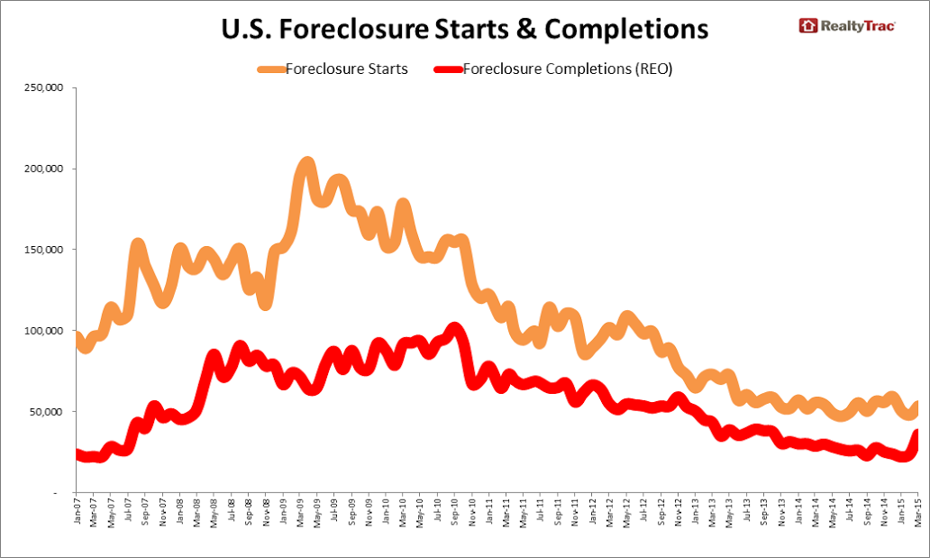 “The 17-month high inrnbank repossessions in March corresponds to a 17-month high in scheduledrnforeclosures auctions in October,” said Daren Blomquist, vice president atrnRealtyTrac. “The March increase is continued cleanup of distress stillrnlingering from the previous housing crisis; not the beginning of a new crisisrnby any means. Some of most stubborn foreclosure cases are finally being flushedrnout of the foreclosure pipeline, and we would expect to see more noise in thernnumbers over the next few months as national foreclosure activity makes its wayrnback to more stable patterns by the end of this year.”</p