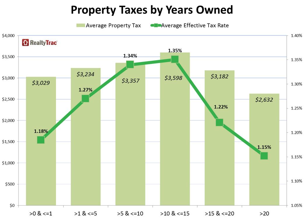 “State laws like Prop 13 in Californiarngive a property tax advantage to homeowners who have owned for a longer time,rnbut the bell curve in effective property tax rates in the middle of thernyears-owned spectrum indicates that many who purchased during the housingrnbubble – or in the years leading up to the housing bubble – may be paying taxesrnbased on a still-inflated valuation of their properties,” said Daren Blomquist,rnvice president at RealtyTrac. “These homeowners should consider appealing theirrnproperty’s assessment if that is an option available to them in their county.”