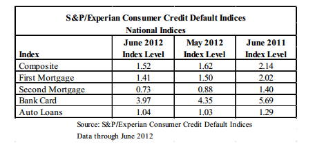 David M. Blitzer, Managing Director andrnChairman of the Index Committee for the company said “June 2012 data continued arnpositive trend in consumer credit quality. rnConsumer default rates are falling and we are approaching new lowsrnacross most loan types. In the lastrnrecession most default rates peaked in the spring of 2009; since then therndecline has been bumpy but consistent.</p