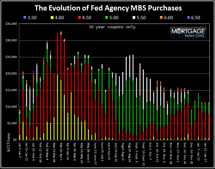 The Federal Reserve today reported on their weekly purchases of agency mortgage-backed securities (MBS).