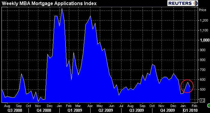 The Mortgage Bankers Association today released the Weekly Survey on Mortgage Application Activity for the week ending January 22, 2010.