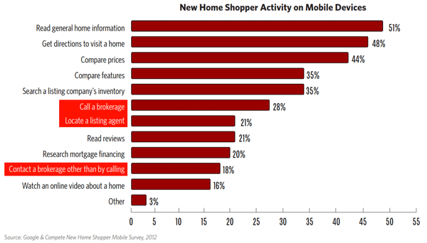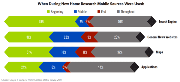 Mobilerndevices are significantly changing the way people search for homes, asrnwell. About 20 percent of real estaternsearchers are done from mobile devices. rnA Google/Complete home shopper study found that 48 percent of people whornused a mobile device in their home search used the device to get directions tornhomes for sale, and 45 percent used the device to request more informationrnabout specific home features or real estate services. </p